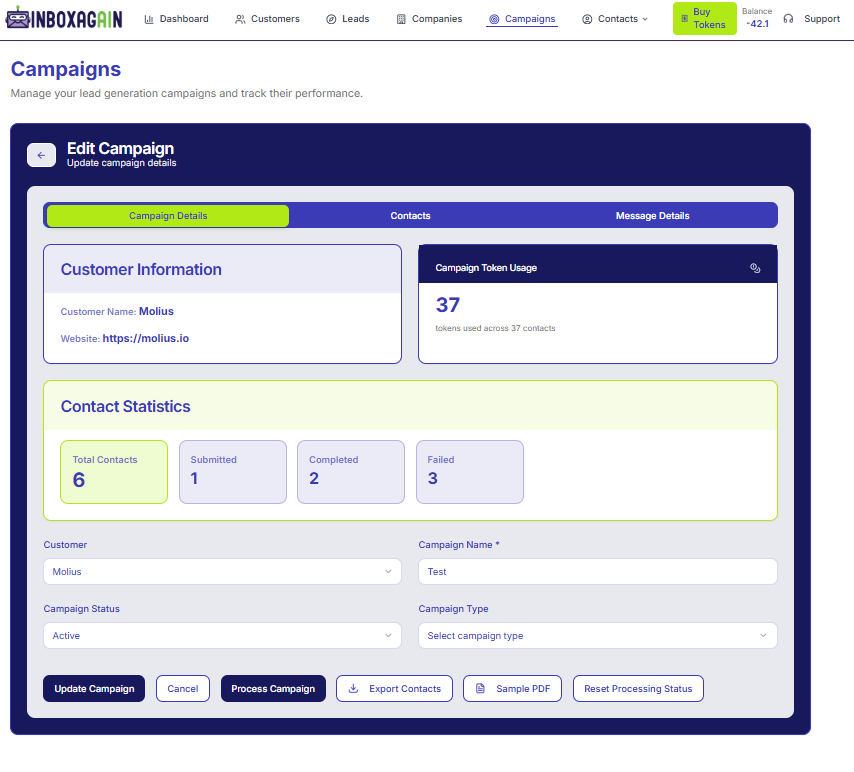 Buy tokens. Use them across contacts, enrichment, and campaigns. Just clean, predictable usage.